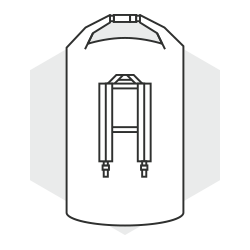A smaller, 15 liter waterproof deck bag that clips to the deck of the board, or the board bag, for easy travel. It features a cross-body strap for independent carrying and a translucent sleeve for your smartphone, letting you use your touchscreen while your phone remains safe and dry.